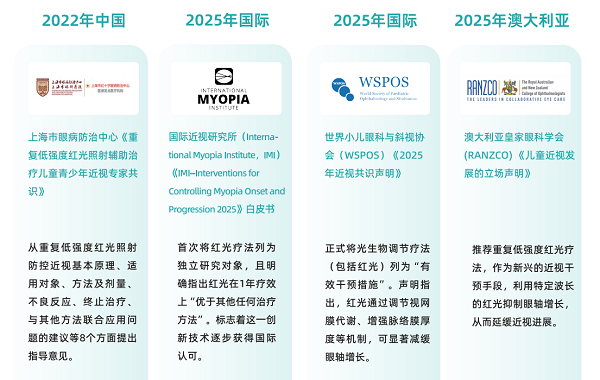 国内外权威共识纷纷推荐,在规范使用的前提下,PBM红光是一种安全性较高、有效的近视干预方式。