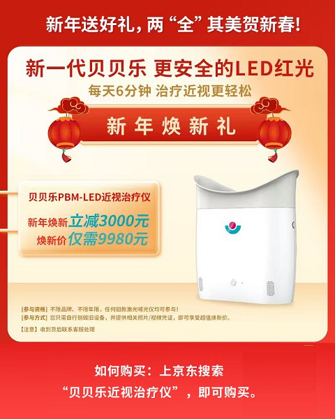 而“贝贝乐PBM-LED近视治疗仪”就是国内在新分类原则下首个获证的LED近视防控产品,符合国家标准,高质量合规,安全有保障。