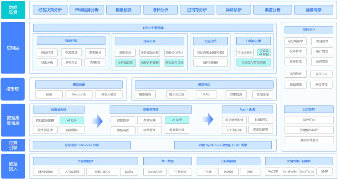得物与火山引擎合作,通过引入火山引擎 Data Agent,优先聚焦“智能看板”和“归因决策”两个场景,逐步实现财务管理场景的 Data Agent(数据智能体)智能升级。