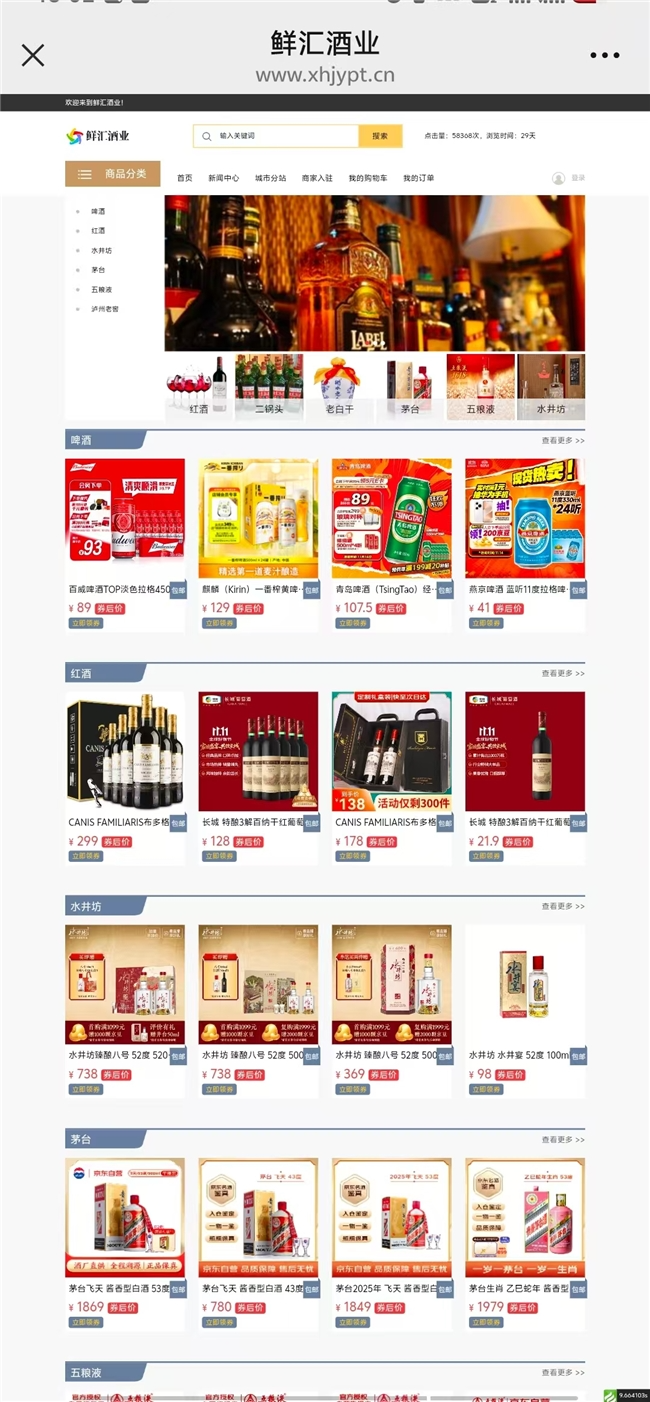 平台涵盖的酒类品项丰富,包括高端白酒、精选红酒、威士忌、清香型轻饮酒以及适合家庭聚会的日常酒水等,满足不同年龄段、不同消费需求。