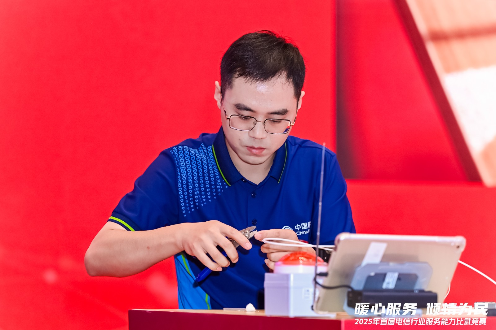 在技能竞赛的战场上,严江锋的“自我加压”成为团队学习的样板。2025年全国首届电信行业服务能力比武竞赛备战期间,面对FTTR组网安装、故障排查、智能家居调测三大核心竞赛内容,他整理形成专属“实战题库”,坚持朝九晚十的高强度实训模式,主动将45分钟的竞赛标准时间压缩至30分钟进行训练。凭借日积月累的扎实功底和赛前的刻苦备战,他在总决赛中仅用28分钟便高质量完成全部三项任务,成功斩获全国二等奖。而这只是他众多荣誉的一个缩影,十年间,他先后拿下两次省级技能比武一等奖、2023年中国移动“赋能建功”智慧家庭装维技能竞赛个人三等奖、2024年第五届全国电信和互联网行业信息通信网络线务员比赛一等奖等多项殊荣,用实力在行业赛场绽放光彩。