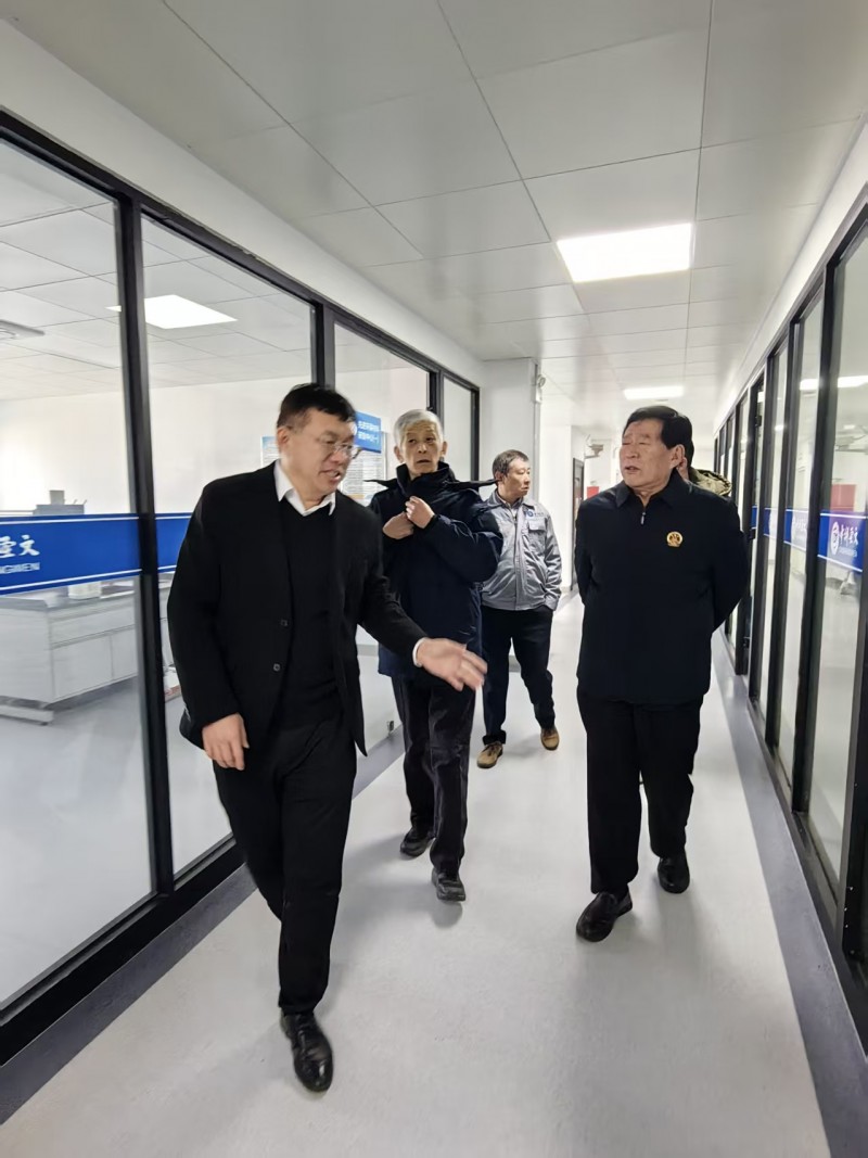 Feng Changfeng, president of Shandong Longpeptide Life Science and Technology Company, and senior executives accompanied Academician Zhang Guotu to inspect the production base of China Active Longpeptide Revitalizing Liquid in Yantai Development Zone.