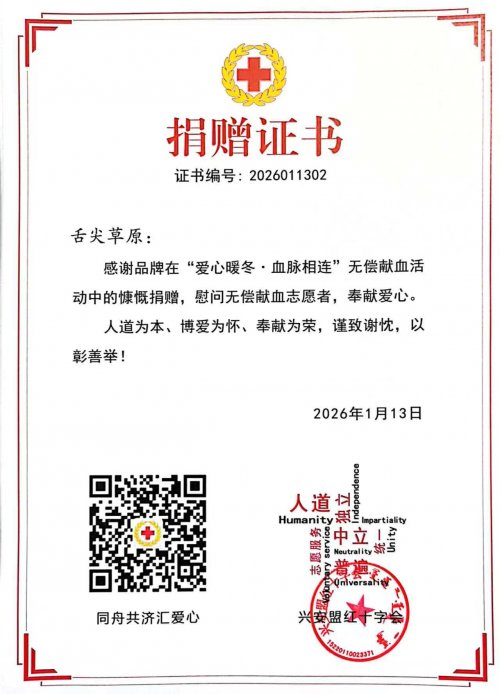 舌尖草原品牌100份伴手礼(乌鸡)慰问献血志愿者,像献血英雄致敬,汩汩热血传递脉脉温情,点点善举汇聚磅礴大爱,这场公益行动为料峭寒冬注入融融暖意,更以实际行动生动诠释了红十字“人道、博爱、奉献”的精神内核。