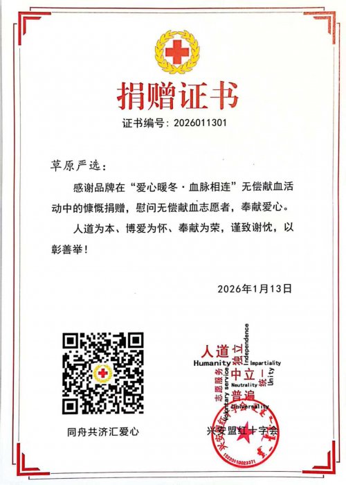 草原严选品牌100份伴手礼(乌鸡)慰问献血志愿者,像献血英雄致敬,汩汩热血传递脉脉温情,点点善举汇聚磅礴大爱,这场公益行动为料峭寒冬注入融融暖意,更以实际行动生动诠释了红十字“人道、博爱、奉献”的精神内核。