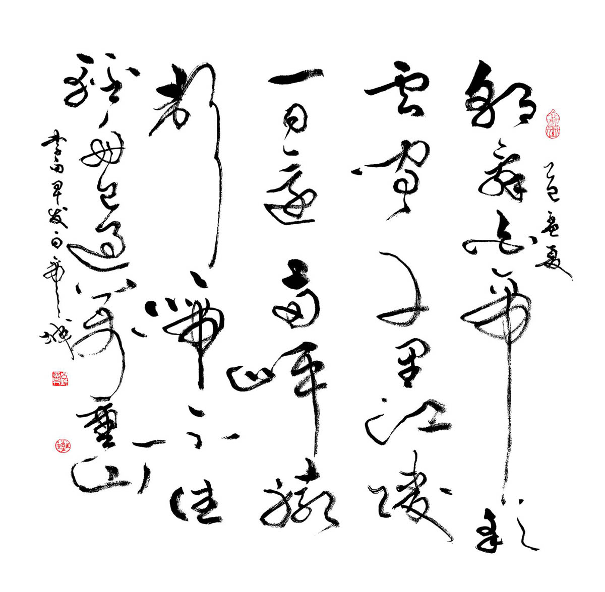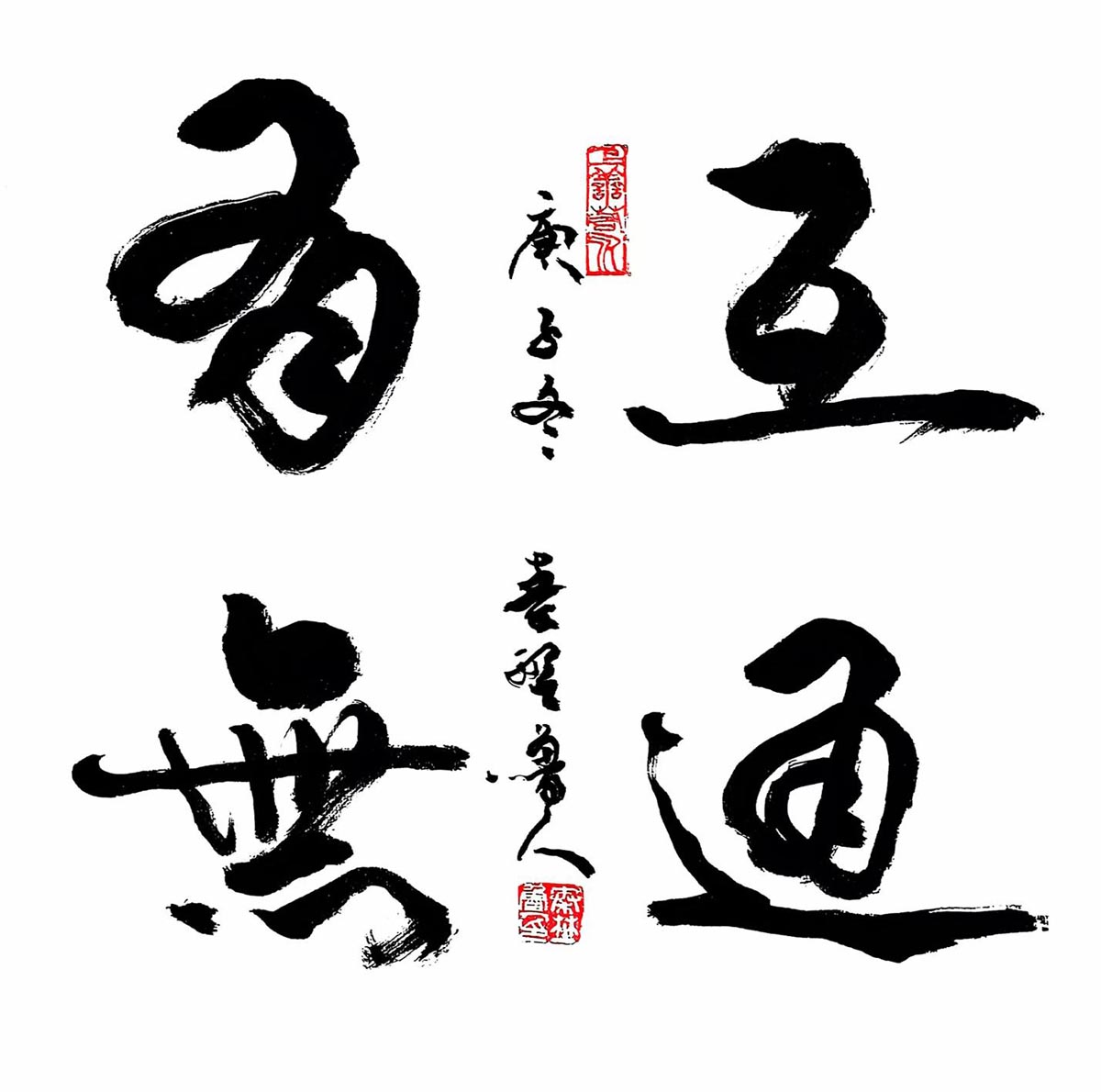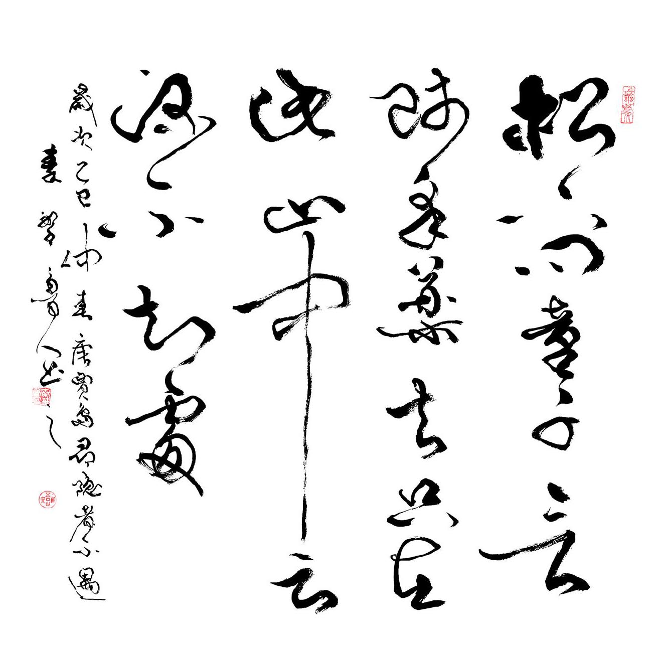 风格融合与创新:在继承传统书法精髓(如王羲之、张旭、怀素等)的基础上,融合个人逸格,形成“劲健秀逸与奔放淋漓兼备”的独特风格。其作品法度森严却气象万千,兼具古风今意,尤以草书见长,代表作《天行健》被誉为“超凡脱俗”的典范。多体兼修:精通行、草、篆、隶、楷五体,作品细腻精致且气韵生动。篆刻亦为所长,治印千余方,刀工老辣意趣高远。