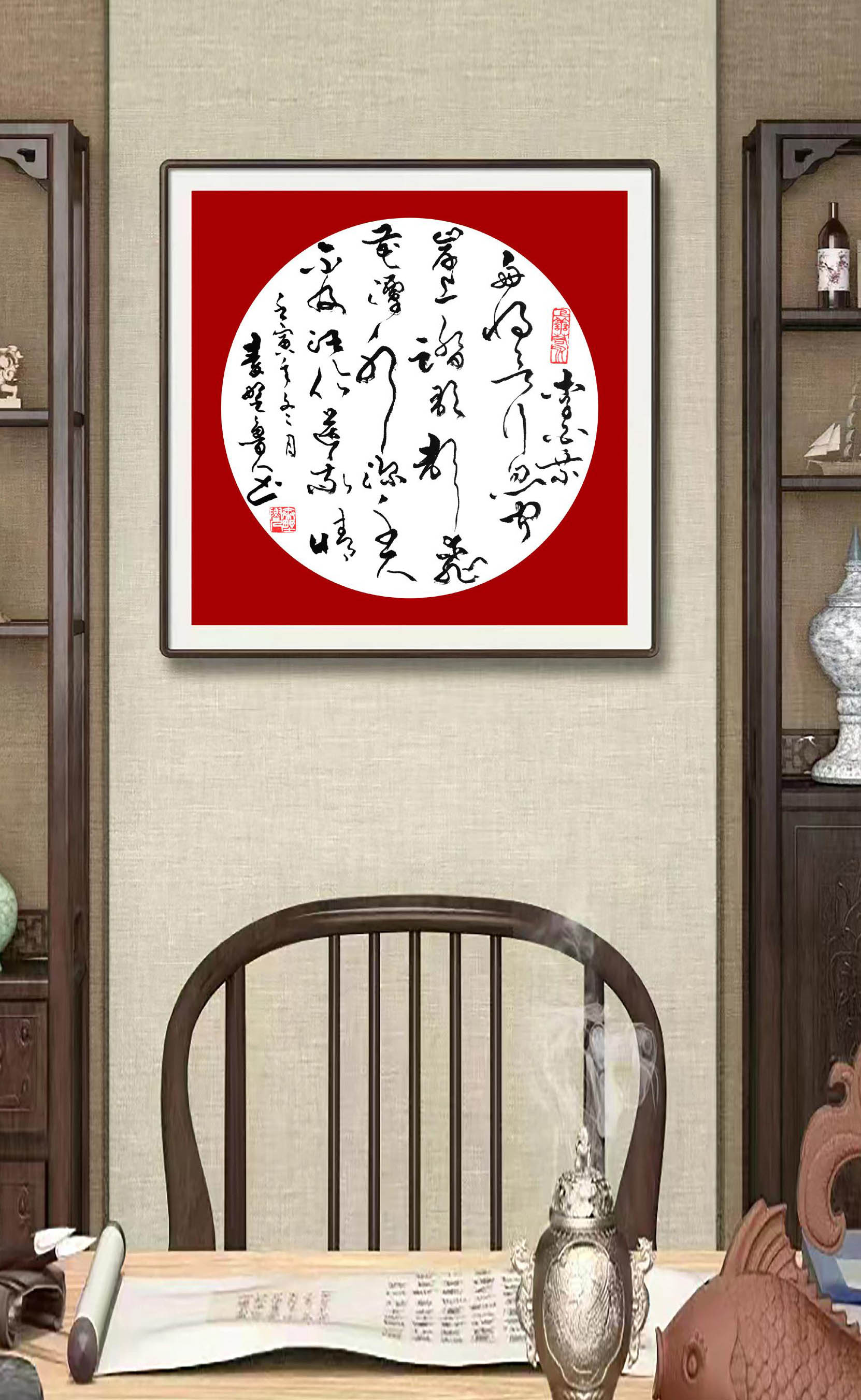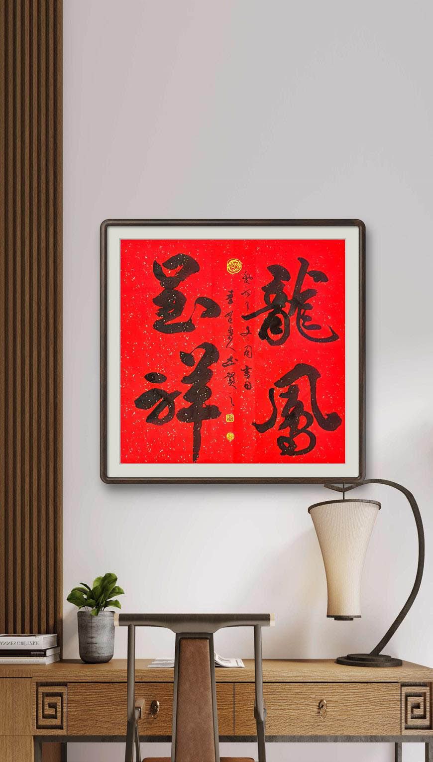 四尺行书斗方《龙凤呈祥》装饰效果图