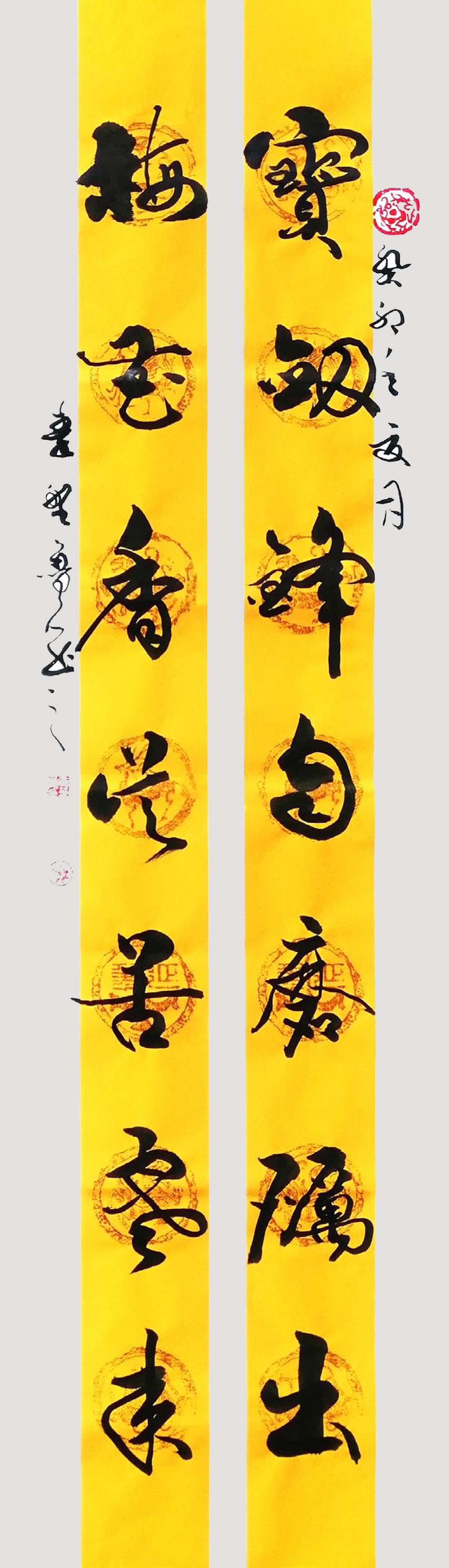 四尺行书对联《宝剑锋自磨砺出·梅花香从苦寒来》
