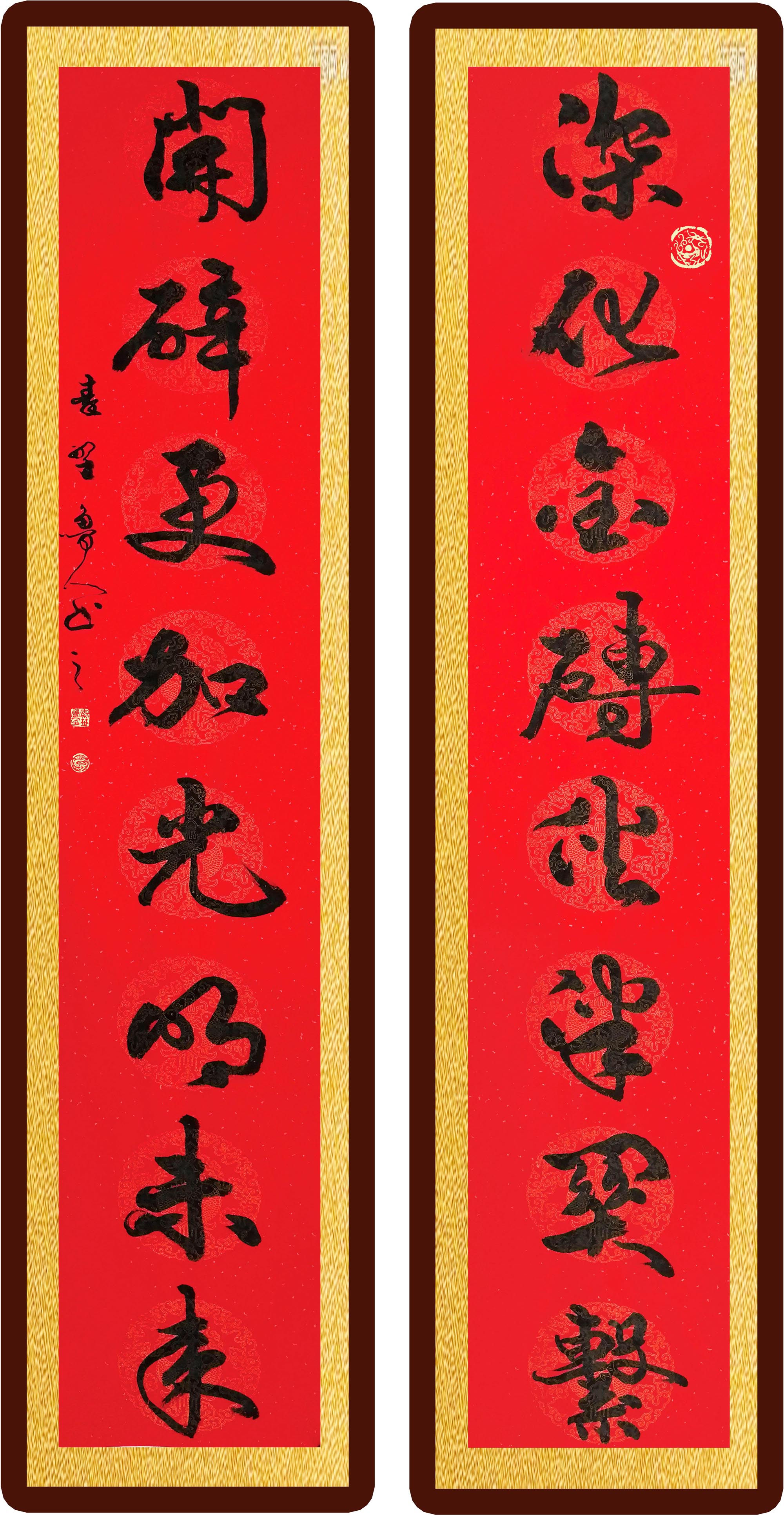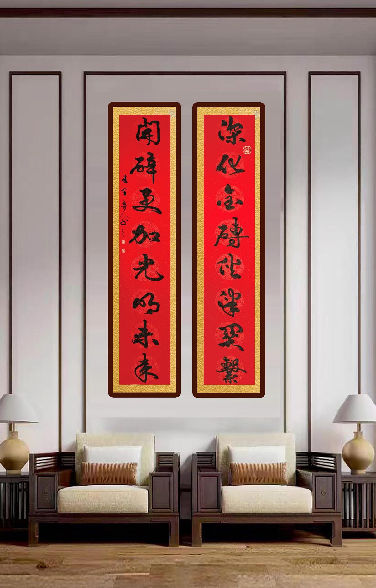 行书瓦当对联《深化金砖伙伴关系 开辟更加光明未来》装饰效果图
