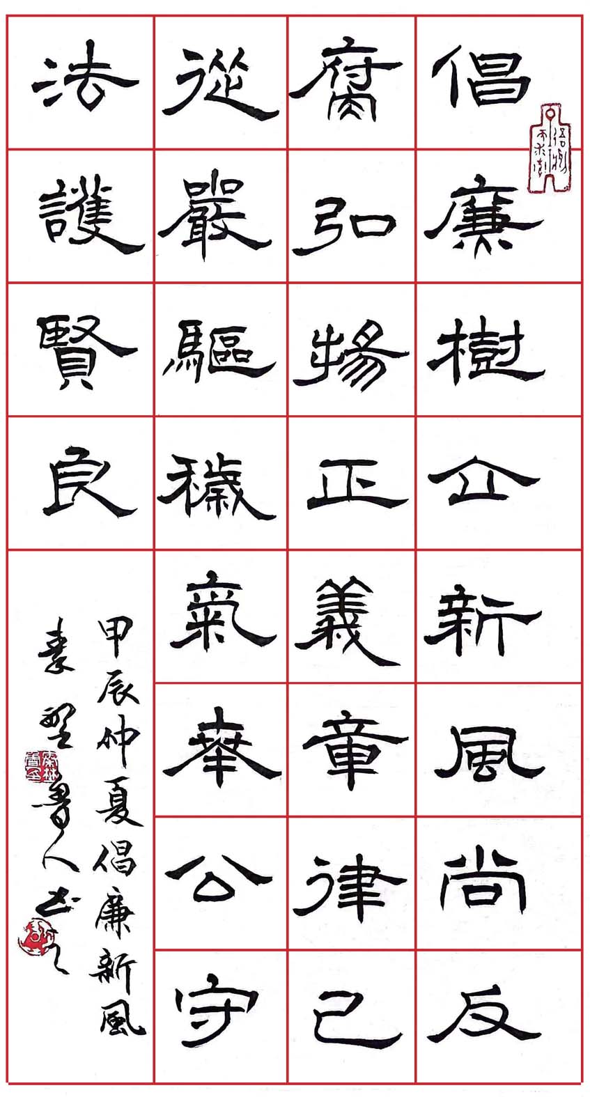 隶书中堂《七绝·倡廉新风》