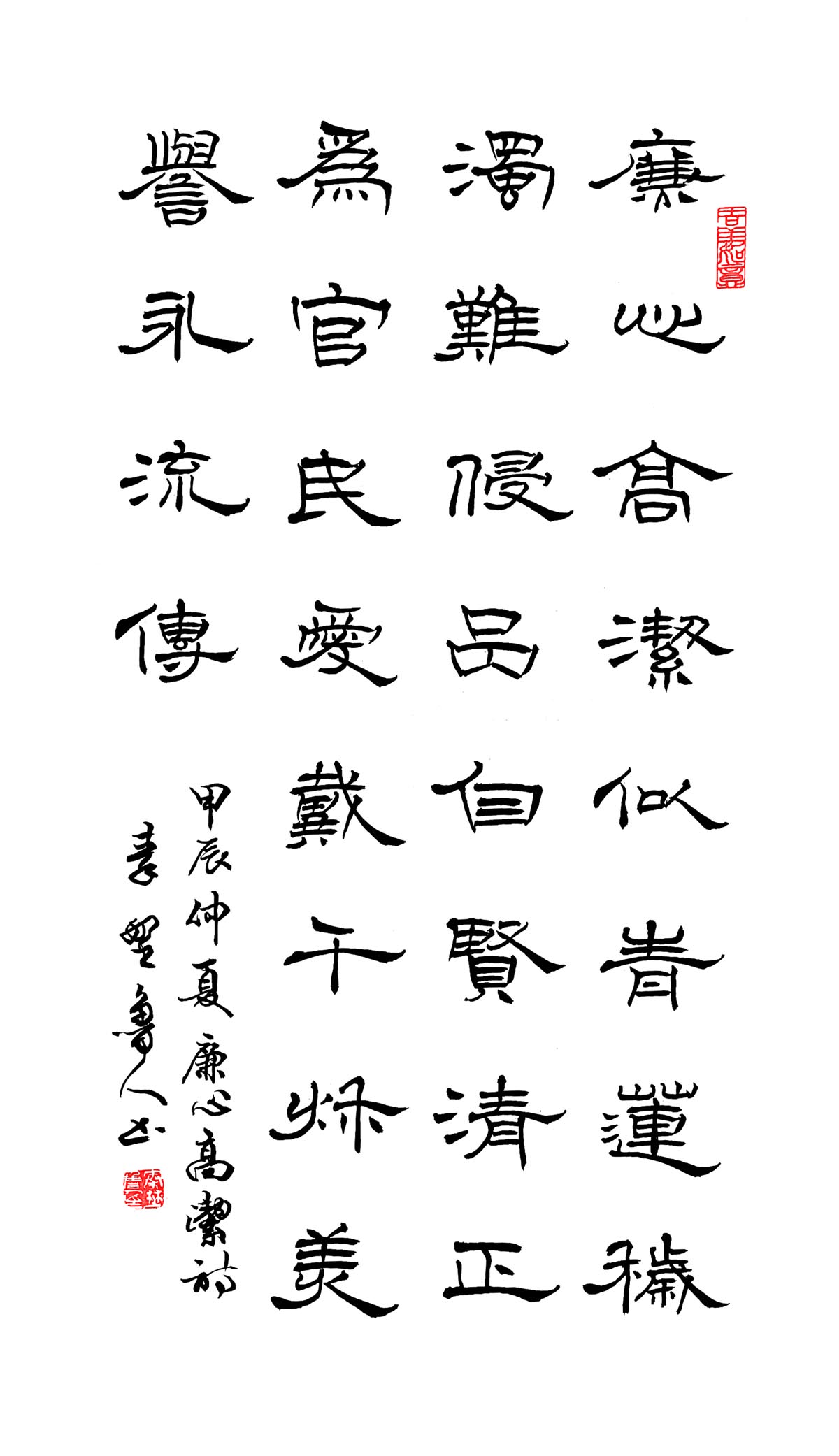隶书中堂《七绝·廉心高洁》
