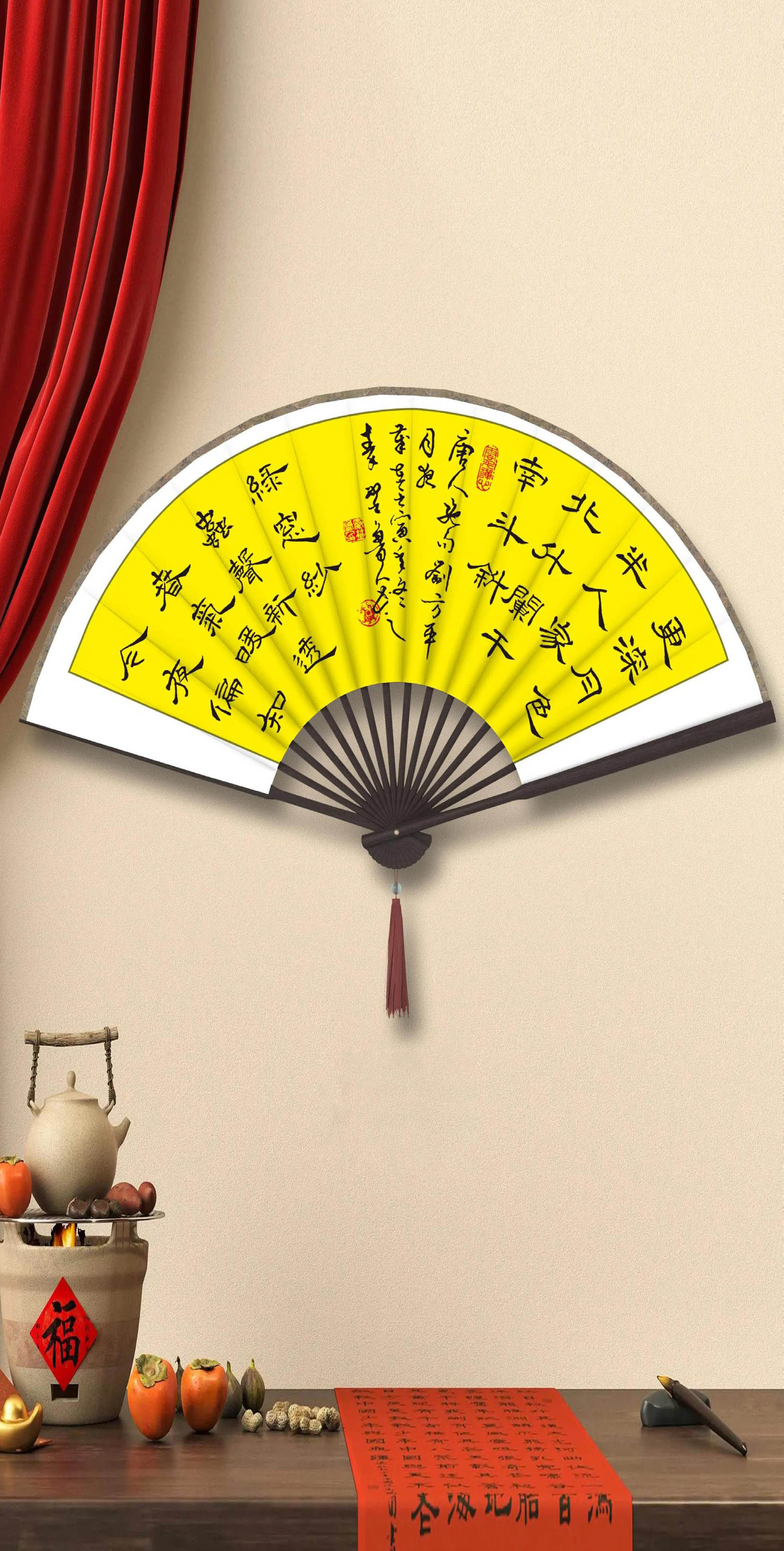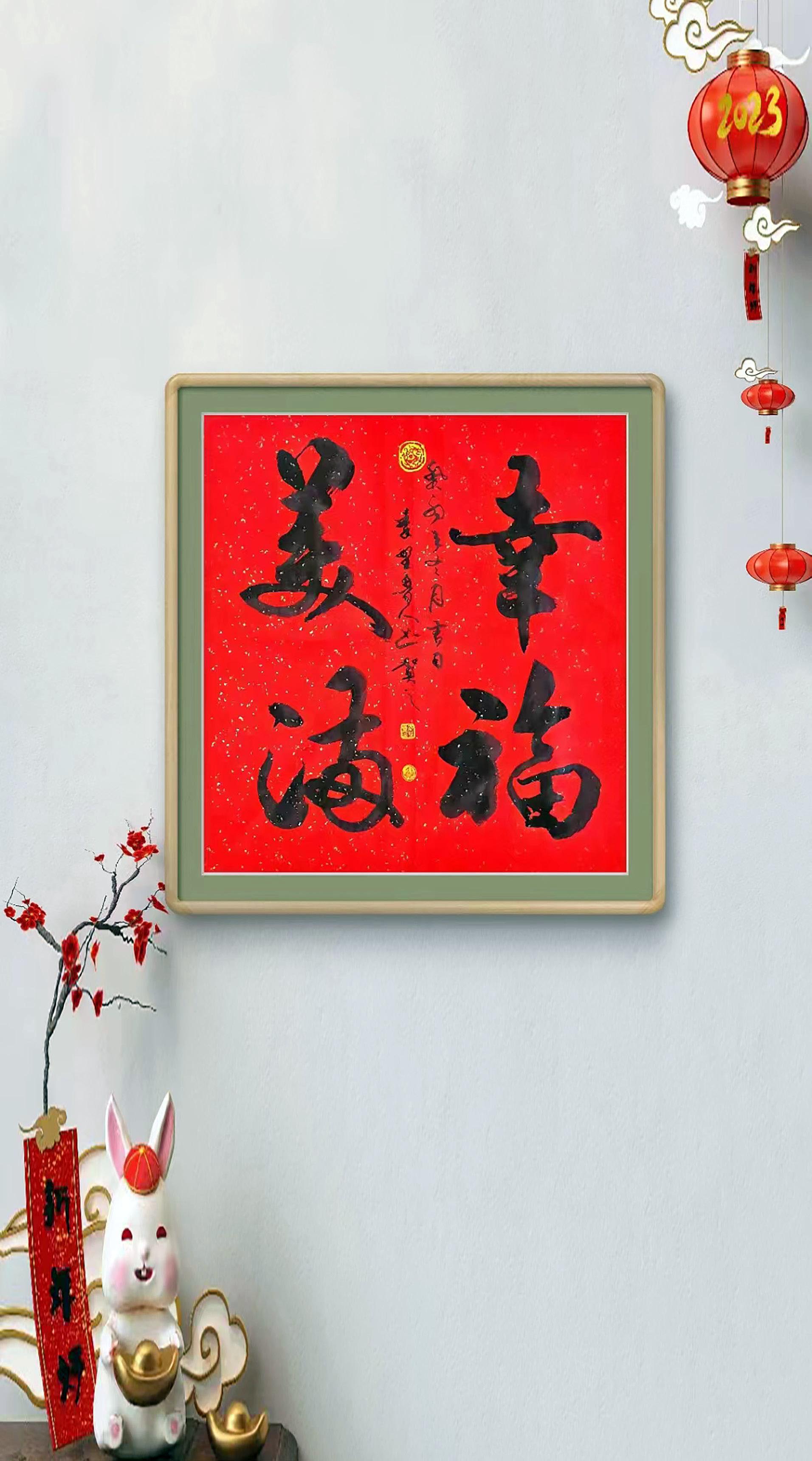 四尺行书斗方《幸福美满》装饰效果图