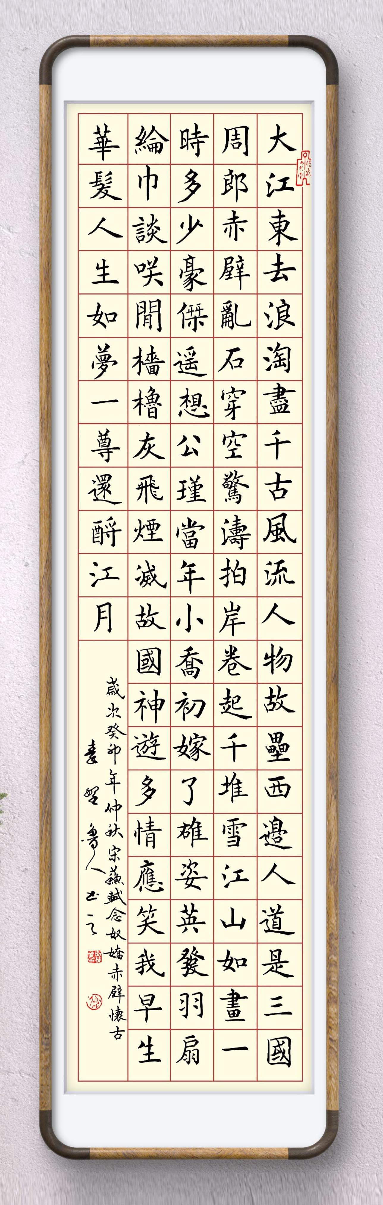 四尺楷书条幅《宋苏轼词·念奴娇·赤壁怀古》装饰效果图