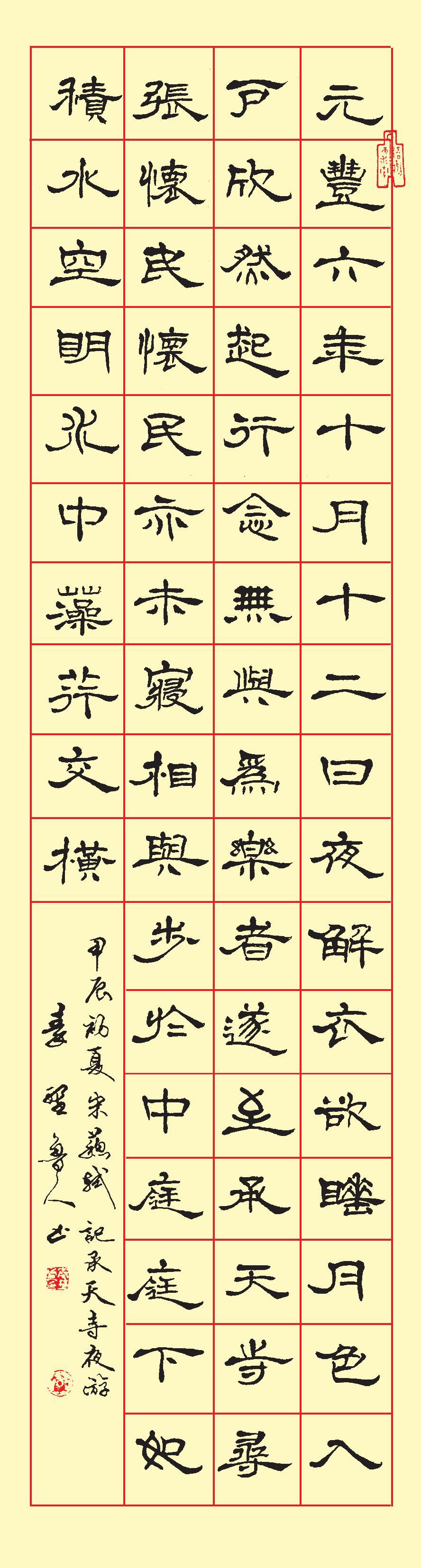 四尺隶书条幅《宋苏轼 · 记承天寺夜游》
