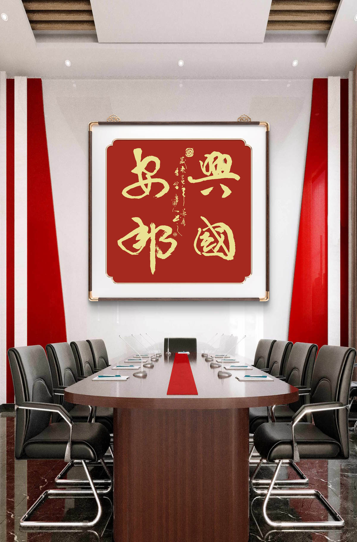 四尺行书斗方《兴国安邦》装饰效果图