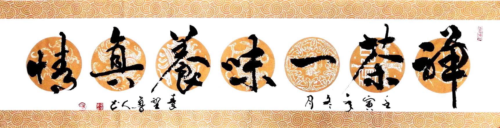 四尺行书横幅《禅茶一味养真情》
