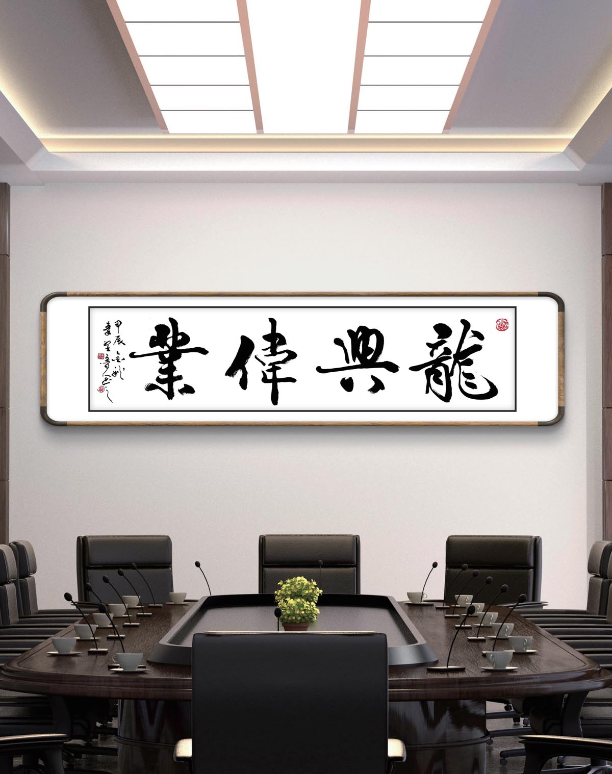 四尺行书横幅《龙兴伟业》装饰效果图