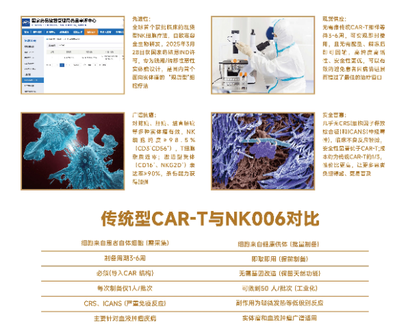 与可能引发严重细胞因子风暴的CAR-T疗法不同,ZMPB-NK006采用非基因编辑工艺,不含病毒载体、来源清晰、免疫排斥风险可控,在同类产品中具备较高的临床安全边际。