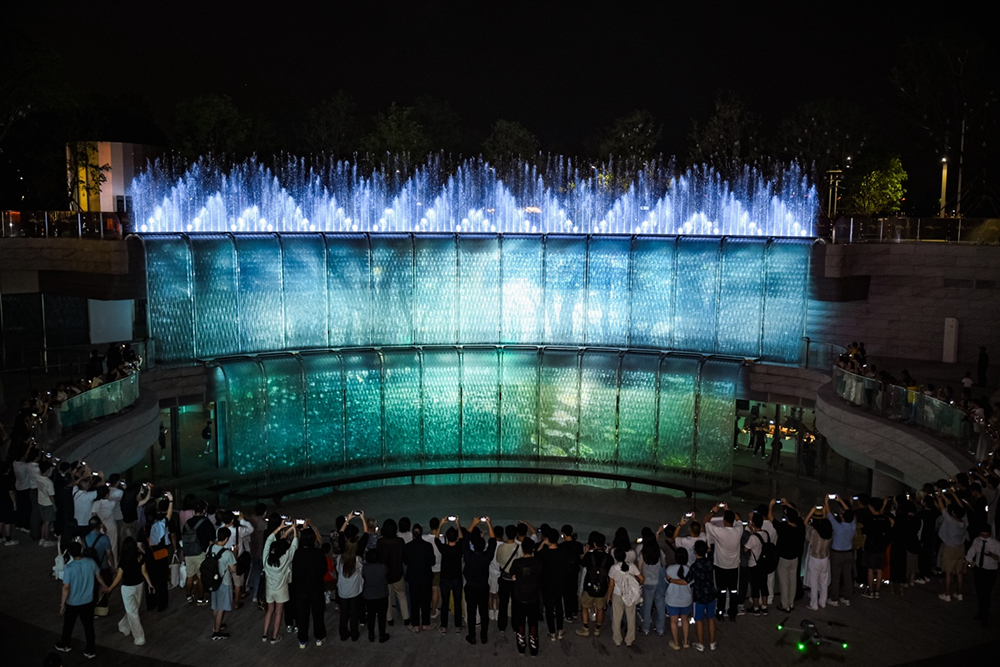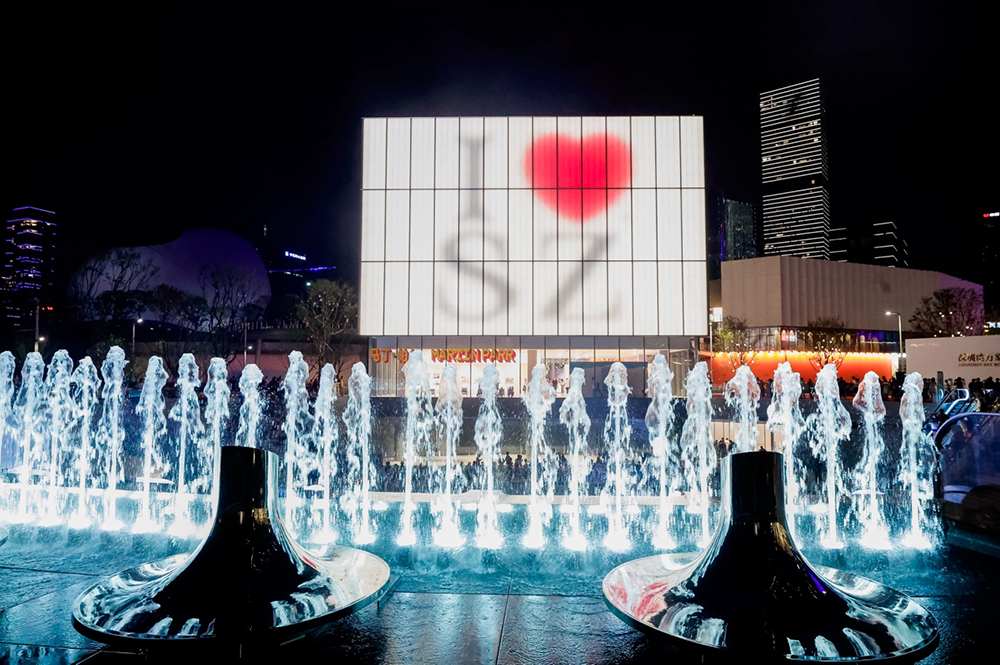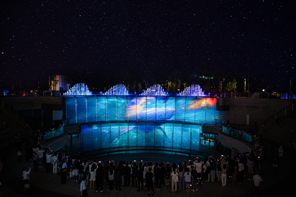 联动好莱坞顶尖特效团队Territory Studio,以WAVE广场为幕布,运用全息投影与前沿视觉科技,打造一场电影级沉浸式水景光影秀。演出以水、光、音共舞,诗意描绘深圳波澜壮阔的发展篇章,为城市夜空增添一抹梦幻色彩。