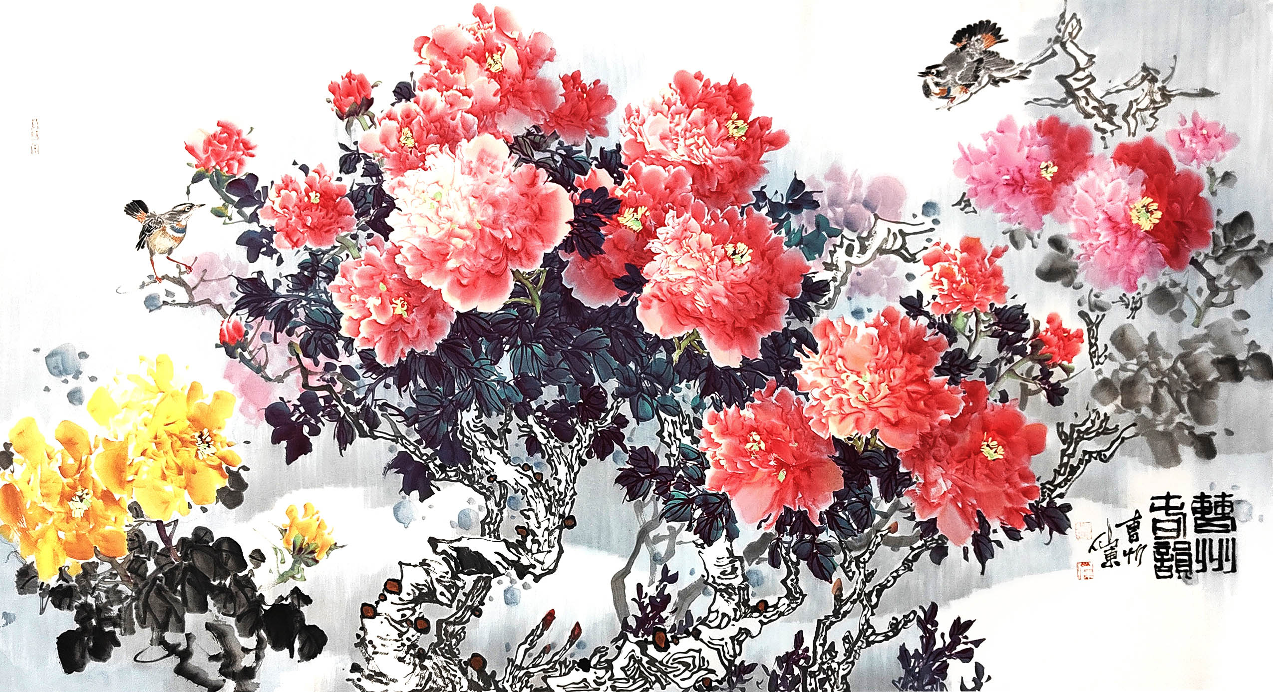 《曹州牡丹冠群芳》六尺整张98x180cm