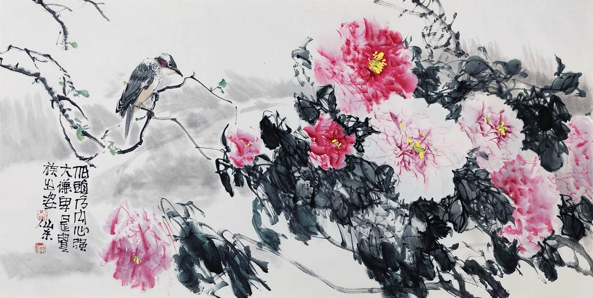 6.牡丹应该画成什么样才是高级?我个人的体会是,天地有大美而不言,牡丹本身就很美,在历史上的名家名作也没有能把牡丹的美充分的表现出来,在这种情况下,避开这个难度,一味的强调个人的表现语言,我认为是逃避。如果哪个画家能把牡丹本身的美表现出来,同时又能体现个人风格,那是我认可的,否则我一律认为他是逃避了表现牡丹之美的真正难度。